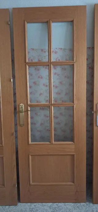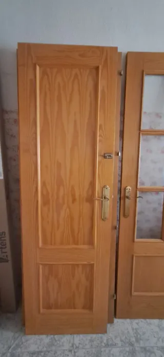 Se venden puertas de madera maciza, ideales para proyectos de carpintería o renovación. - Material: Madera maciza. - Acabado: Superficie lisa y uniforme. Hay 8 puertas en buenas condiciones medidas 62.y 72