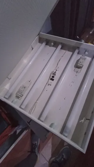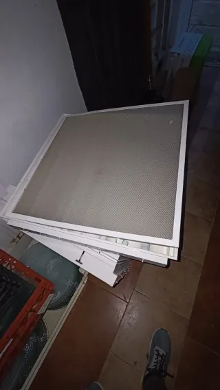 Placa de luz fluorescente con varios tubos. - Estructura metálica blanca. - Incluye balastros y tubos. No son de led el precio es por placa de luz hay 6 placas de luz