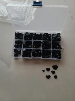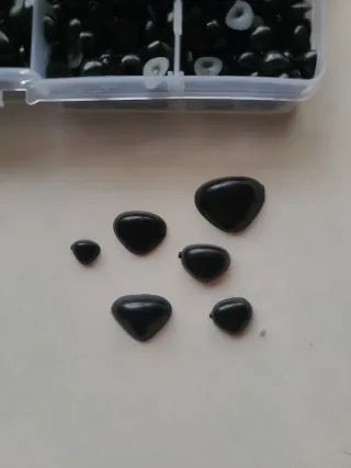 Lote de narices de plástico con forma triangular. - Material: Plástico. - Color: Negro. - Forma: Triangular. manualidades como la fabricación de muñecos y peluches.