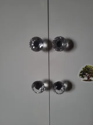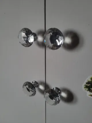 Set de cuatro pomos de cristal con un diseño facetado que aporta un toque de elegancia a tus muebles. - Material: Cristal. - Diseño: Diamante facetado. - Cantidad: 4 unidades.