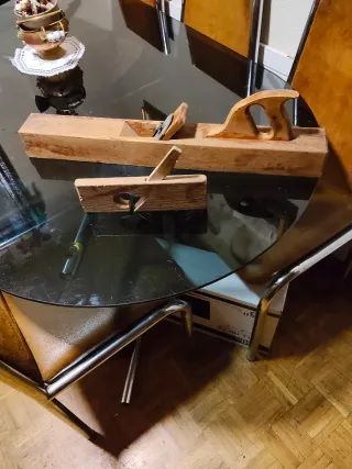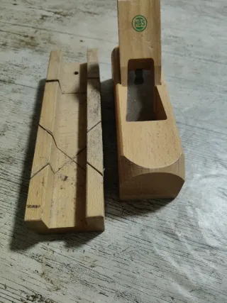Conjunto de herramientas de carpintería de madera. - Cepillo de carpintero con marca HBS. - Caja de ingletes para cortes precisos. Muy bien estado poco uso. Precio por las dos cosas, algo negociable. Entrego en Barcelona, pero puedo enviar