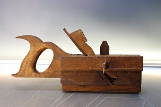 Herramientas de carpintería antiguas. - Cepillo de madera. - Sierra de mano.