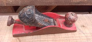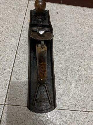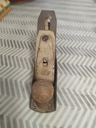 Cepillo de carpintero con diseño curvo de la marca Urko. Modelo N43 Está usado pero funciona. La cuchilla está afilada. Habría que ajustarlo al gusto de quien lo use. Perfecto para usar o para coleccionistas. Está tal y como se ve en las fotos. - Cuerpo metálico. - Ajuste de profundidad. - Mango ergonómico.