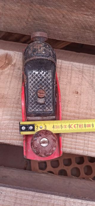 Preciosa cepilladora antigua para carpintería. Ideal para coleccionistas o aficionados a la carpintería. - Es un cepillo de madera y metal. - Tiene un diseño clásico y robusto. - Presenta señales de uso y desgaste, lo que le da un encanto único. Antiguo cepillo de carpintero en muy buen estado funcionando. Ideal como regalo o para decoración. Entrego en Humanes de Madrid y también hago envío por la aplicación. - Cuerpo de metal rojo y negro. - Mango de madera. - Ajuste de cuchilla.