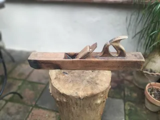 Vendo este cepillo de carpintero, cuerpo de madera y cuchilla de metal.