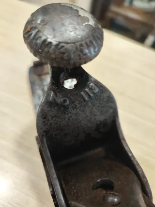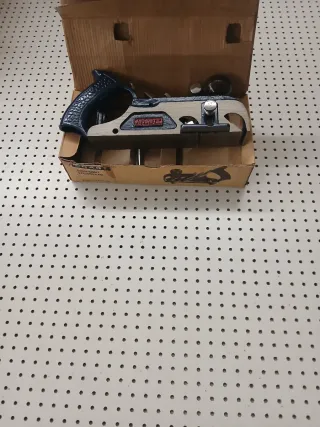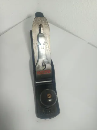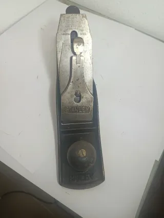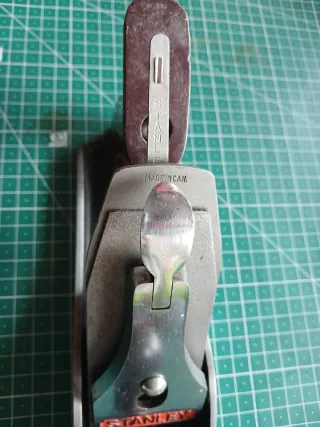 Cepillo de carpintero de la marca Stanley. Un clásico para trabajos en madera. Hoja no original. Y mango de fibra.