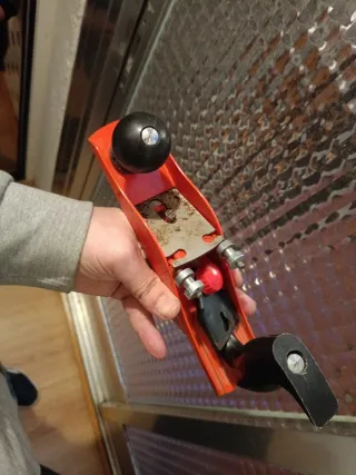 Cepillo de carpintero manual. Está en buen estado, originalmente viene para usarlo con cuchillas intercambiables. Pero lo entrego con una cuchilla normal adicional para que uses la que necesites (para no buscar repuestos) Ver las fotos. Regalo mango y pomo. Los mangos y los pomos son de plástico. Se entrega tal y como se ve en las fotos.