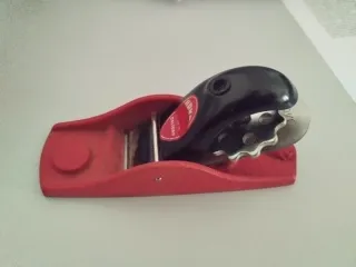 Herramienta manual para carpintería. Necesario afilado - Base metálica negra. - Mango de plástico rojo.