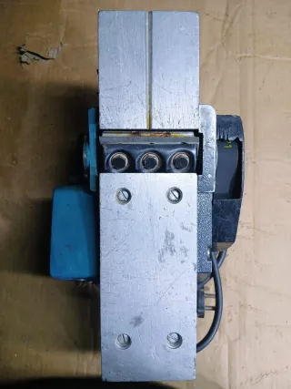 Cepillo eléctrico J71 en color azul con detalles en rojo. - Mango ergonómico. - Botón de encendido/apagado. - Cable de alimentación. Cepillo carpintero en muy buen estado, rodamientos nuevos, cuchillas afiladas, correa nueva, está a capricho.