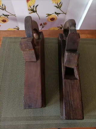 El precio es x ambos. Por separado se venden a: 25€ el pequeño 45€ el grande Dos cepillos de carpintero para trabajar la madera. Son herramientas manuales clásicas para alisar y dar forma a la madera. - Cuerpo de hierro fundido. - Mangos de madera. - Ajuste de profundidad.