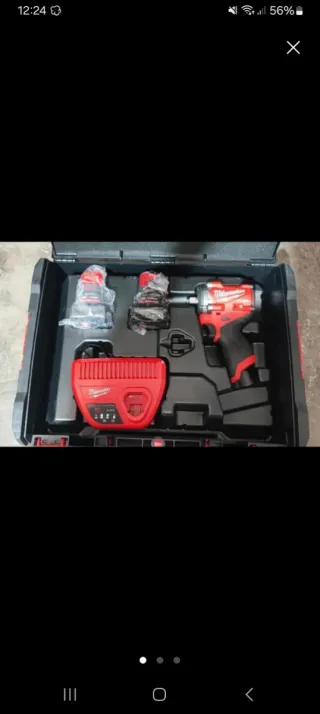 Llave de impacto Milwaukee M12 FCIWF12G3-502X en su maletín. - Incluye cargador. - Incluye dos baterías. - Maletín de transporte.