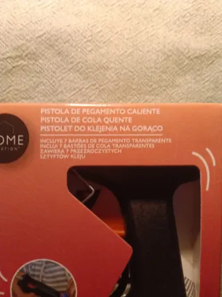 Pistola de pegamento caliente de la marca Home Creation. - Incluye 7 barras de pegamento transparentes.