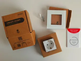 Enchufe inteligente Bseed para el hogar. - Controlable vía WiFi. - Diseño moderno con marco de cristal blanco.