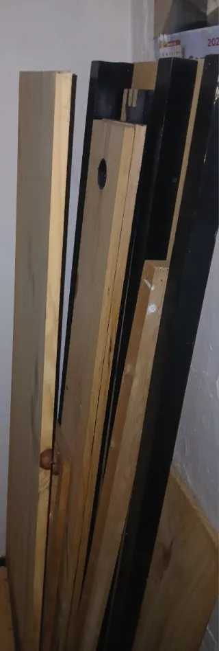 Lote de retazos de melamina, madera de pino y listones. Para mas informacion privado y miramos lo que pueda interesarle y precio.