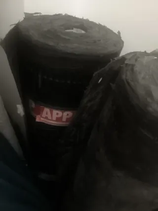 Rollo de tela asfáltica para impermeabilización. - Marca APP visible. - Color negro.
