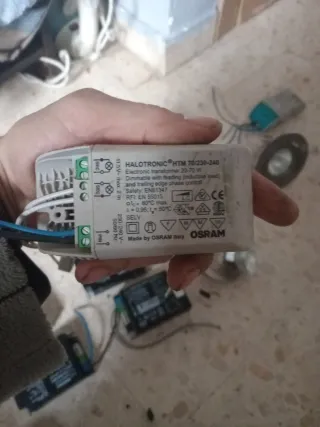 Transformador electrónico OSRAM HALOTRONIC HTM 70. - Potencia: 20-70 W. - Dimmable con control de fase de borde de ataque y de borde de caída. - Seguridad: EN61347. - RFI: EN 55015. - Temperatura máxima de la carcasa (otc): 80°C. - Factor de potencia (λ): 0,95. - Temperatura de funcionamiento (ta): 50°C. - SELV. - Fabricado en Italia.