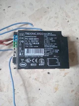 Balasto electrónico Tridonic ATCO para lámparas de 35W HI. - Modelo: PCI 0035 B011 - Tensión: 220-240V 50/60Hz - Corriente: 0,20A - Fabricado en Suiza