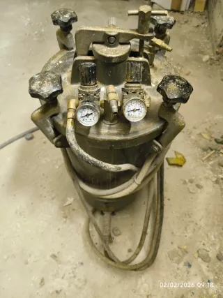 Calderín de presión para aplicar gotelé. Ideal para trabajos de decoración. - Incluye manómetros para control de presión. - Conexiones para mangueras.
