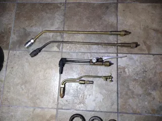 Conjunto de sopletes de corte y paea calentar - Soplete de latón con boquilla plateada. - Soplete de metal oscuro con mango negro. - Soplete con mango plateado y negro. - Soplete pequeño con conexiones de latón. X -21