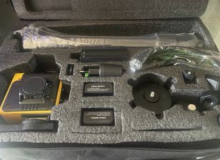 Nivel láser profesional de 360 grados con accesorios. - Incluye trípode. - Mando a distancia. - Baterías recargables. - Bolsa de transporte.