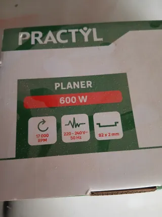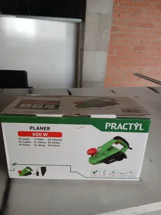 Cepillo lijadora de la marca Practyl, con una potencia de 600W. Incluye accesorios. - Potencia: 600 W - Ancho de cepillado: 82 mm - Profundidad de rebaje: 0-2 mm - Velocidad sin carga: 16000 rpm - Cable de 2 metros. Usada 1 vez solo...