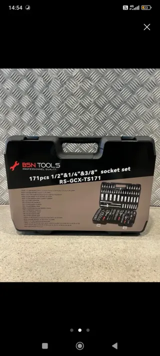 Completa caja de herramientas con 171 piezas, ideal para reparaciones y mantenimiento. - Incluye una amplia variedad de vasos, puntas y accesorios. - Fabricada en metal resistente.