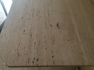 Pieza de mármol travertino con un acabado natural y texturizado. Medidas ( sin contar el lado estrecho) sooo lado grande cuadrado. 34 x 75 cm.grosor 2 cm - Material: Mármol travertino. - Color: Tonalidades beige y crema. - Diseño: Textura irregular característica del travertino.
