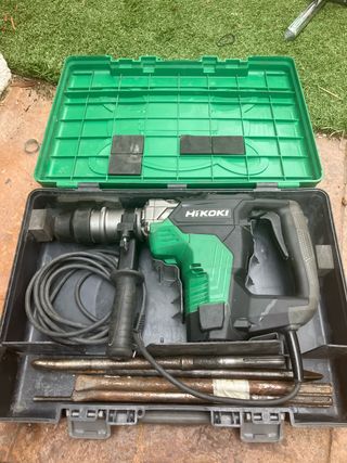 Taladro percutor HIKOKI (segunda marca de hitachi)en su maletín original. - Incluye varios cinceles para diferentes trabajos. - Maletín de plástico verde y negro. - Cable de alimentación.