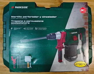 Taladro percutor y cincelador Parkside, modelo Martillo perforador y cincelador. - Potencia de conexión: 1550 W. - Número de percusiones: 0-3900 min-1. - Incluye accesorios.