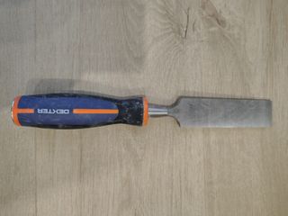 Cincel de la marca Dexter con mango ergonómico. - Mango de goma y plástico. - Hoja de metal. - Color del mango: azul, naranja y negro.