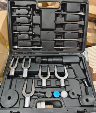 Set de martillo neumático con cinceles para diversas tareas. - Juego de 5 cinceles de diferentes formas. - Manguera de conexión. - Estuche organizador. Disponible en nuestras instalcaciones mas productos en nuestro perfil avenida del quijar 38 arganda del rey madrid