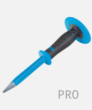 Cincel de la marca Bellota con mango protector. - Mango de goma ergonómico. - Varilla de acero al cromo vanadio. - Protector de mano integrado.