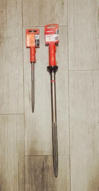 Set de cuatro cinceles Hilti.urge vender.ultimos días - Cincel plano de 280 mm. - Cincel plano de 250 mm. - Cincel de puntiagudo 360 mm. - Cincel puntiagudo de 250 mm.
