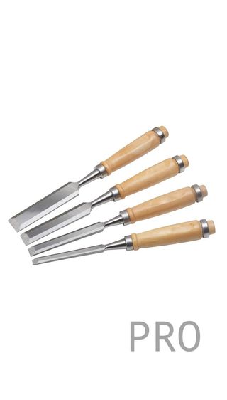 Conjunto de herramientas para tornear madera. - Incluye cinceles de diferentes formas y tamaños. - Mangos de madera para un agarre cómodo.