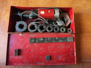 Se vende roscadora eléctrica SUPER-EGO en su maletín. - Incluye la máquina roscadora. - Juego de 7 boquillas de diferentes tamaños. - Maletín de transporte rojo.