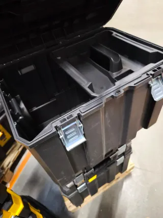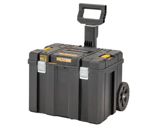 Caja de herramientas Dewalt con ruedas y asa extensible. Diseñada para facilitar el transporte de herramientas. - Construcción robusta. - Ruedas para movilidad. - Asa retráctil.