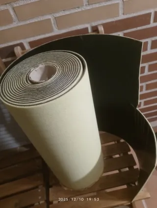 Rollo de material aislante acústico para tuberías. Está empezando pero habré gastado como un 10% del rollo Aislante acústico bajantes Fonodan 10 x 0,42 m 4 mm.