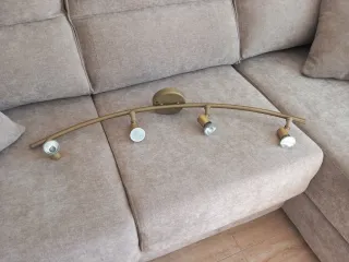 Regleta de iluminación con cuatro focos orientables. Su diseño curvo y acabado dorado le dan un toque moderno. - Cuatro focos direccionales. - Acabado en color dorado.