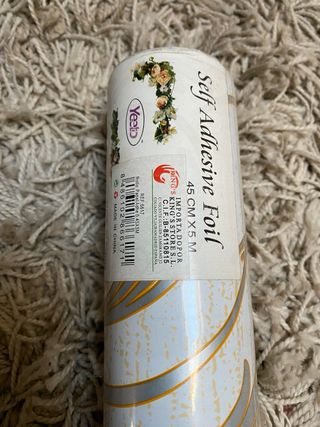 Rollos de papel pintado con diferentes diseños. El precio es unitario, cada rollo 5€ - Papel pintado con rayas rosas y blancas. - Papel pintado liso amarillo. - Papel pintado Norwall con diseño de madera. - Papel pintado infantil Children's Designs con estrellas y luna.