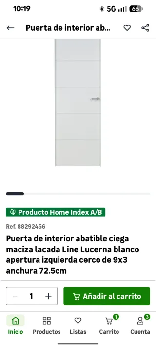 Puerta de interior abatible ciega maciza lacada Line Lucerna en color blanco. - Medidas: 72.5cm de ancho. - Apertura: Izquierda. - Cerco: 9x3. Comprada por error. Todavía embalada.