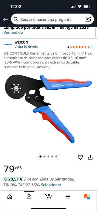 Herramienta crimpadora WEICON 16 mm² HEX