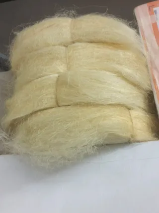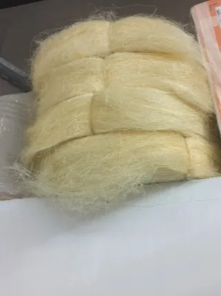 Rollo de esparto que es sisal natural. Cuatro unidades. - Esparto sin mezclar. - Sisal en tiras. Para fabricar piezas. Sobre 40 kg. A recoger, NO envío.