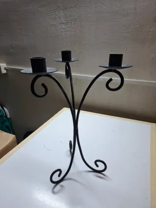 Candelabro de hierro con capacidad para tres velas. Su diseño clásico y robusto lo hace perfecto para cualquier ambiente. - Material: Hierro. - Color: Negro. - Diseño: Tres brazos curvos con remates decorativos. - Base estable. Altura 30cm Ancho 20cm