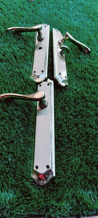 Preciosa manillas para puertas, de un color dorado brillante. Son tres manillas en total, con un diseño elegante y clásico. - Fabricadas en bronce. - Diseño elegante y clásico. - Tres unidades incluidas.