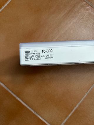Luz de emergencia LED AERLUX con protección IP65. - Modelo: 10-300TE Auto-Test - Autonomia: 1 hora - Tipo: No permanente - Lumenes: 300 lm Nueva, sin estrenar. Regalo de marco de empotrar