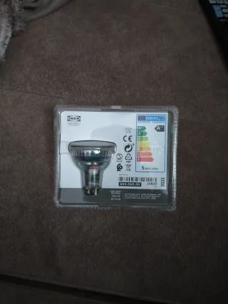 Bombilla LED de la marca Ledaare con casquillo GU10. Proporciona una luz cálida de 2700 Kelvin. - Potencia: 4.1W (equivalente a 50W). - Flujo luminoso: 345 lúmenes. - Vida útil: 25.000 horas. - Ángulo de haz: 600cd. - Tiempo de encendido: <1 seg. - Modelo: LED1931R5.
