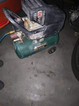 Compresor de aire Parkside PKO 270 A1 + Accesorios Con poco uso y muy cuidado. No incluye la caja. No se hacen envíos. Recogida en la zona de Godall, Tortosa y Amposta. INCLUYE: - Pistola de inflado de neumáticos - Pistola para barnizar - Grapadora neumática Aplicaciones: inflado, pintura al aire, para herramientas neumáticas, limpiar residuos con aire comprimido, etc. - Modelo: PKO 270 A1 - Marca: Parkside - Color: Verde y negro