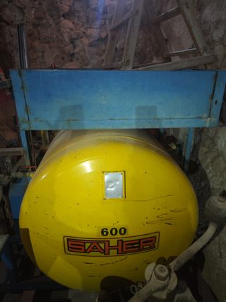 Compresor de aire SAHER con una capacidad de 600 litros. + 4 tigeras pneumáticas incluidas en el precio.