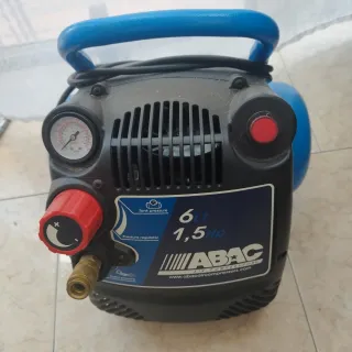 Compresor de aire ABAC con depósito de 6 litros y motor de 1.5 HP. Ideal para diversas tareas. - Manómetro para control de presión. - Regulador de presión. - Conexión rápida para manguera.