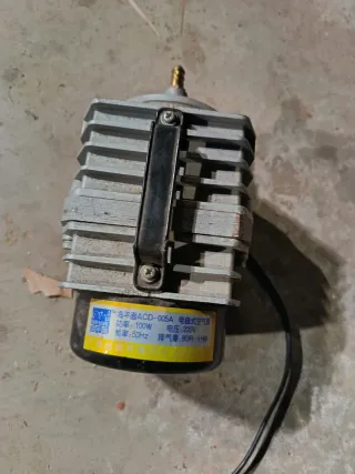 Compresor de aire diseñado para asistir en el corte con láser. Su carcasa es de aluminio y cuenta con un asa para facilitar su transporte. - Carcasa de aluminio. - Asa de transporte.